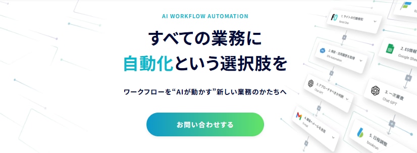 workrunは、ノーコードで業務フローを構築できる AIワークフロー自動化ツール です。